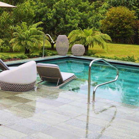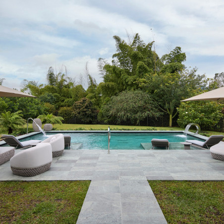 Sistem 9 Smart RS951 este piesa liniară prefabricată din beton care formează marginea piscinei și canalul colector ascuns, fără utilizarea unui grătar.