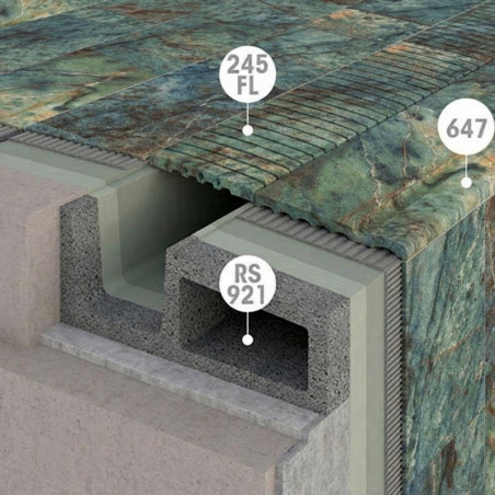 Prestige permite realizarea unui proiect monocolor integral, cu continuitate între bazin, margine și plajă. Este soluția optimă pentru proiecte rezidențiale și hoteliere unde se dorește integrarea estetică totală a sistemului overflow, fără discontinuități vizuale între zonele umede și cele de trafic.