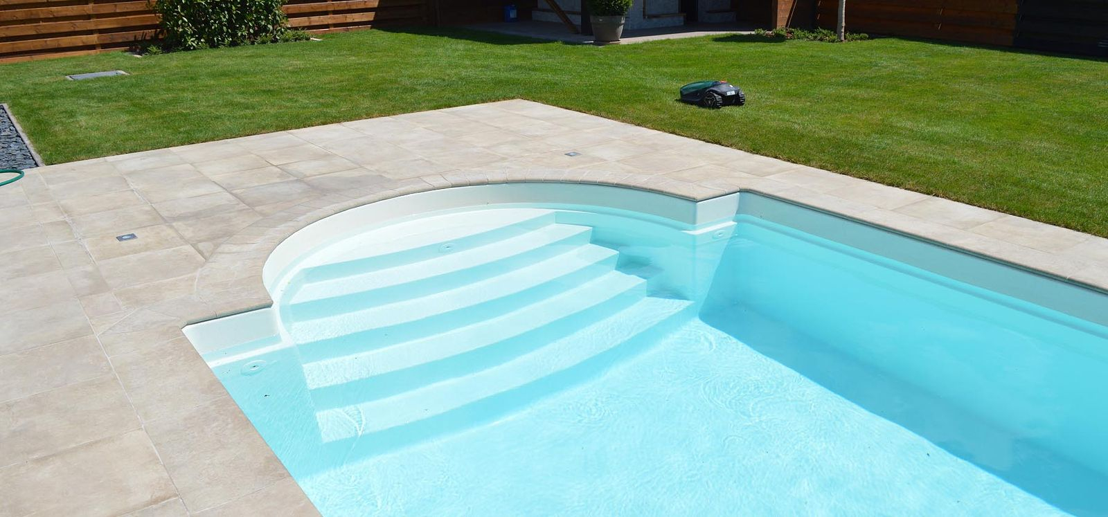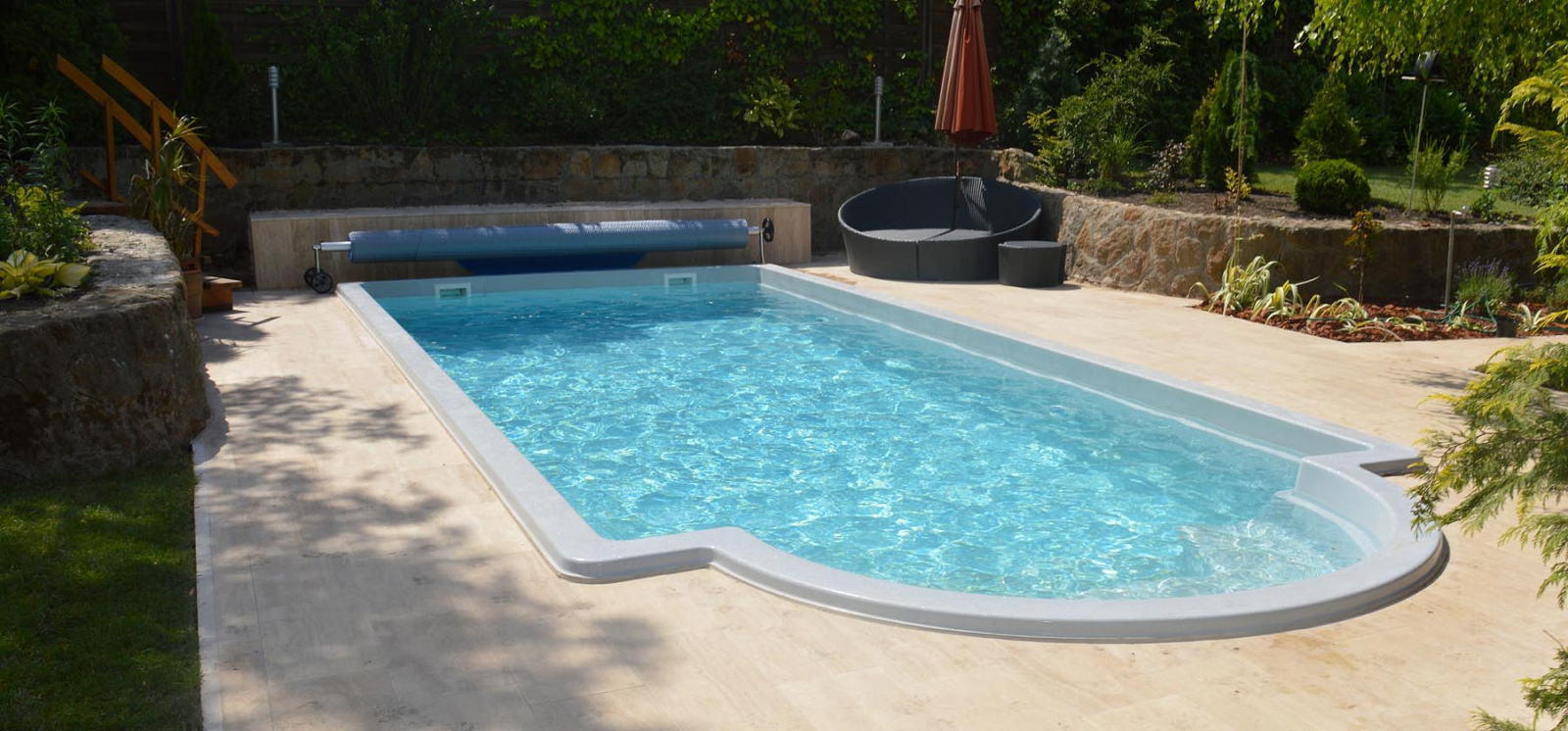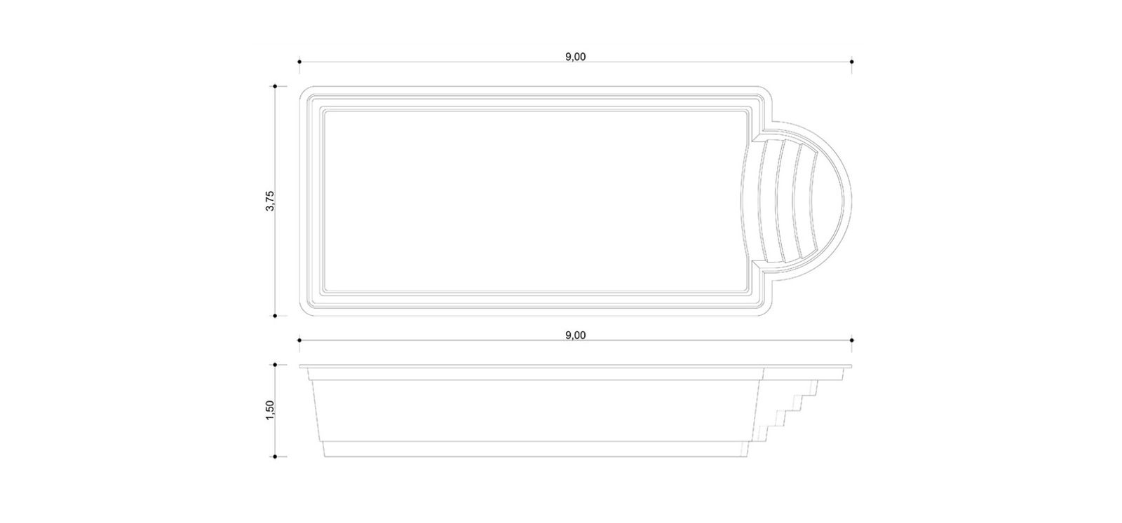 Piscina ceramică ROMA 90 de la Ampron este un model premium, monobloc, cu dimensiuni generoase de 900 x 375 x 150 cm, potrivită pentru grădini mari. Are un design elegant cu scară romană antiderapantă, este construită dintr-un sistem compozit ceramic de 9 straturi pentru rezistență și durabilitate și vine cu 20 de ani garanție pe structură.